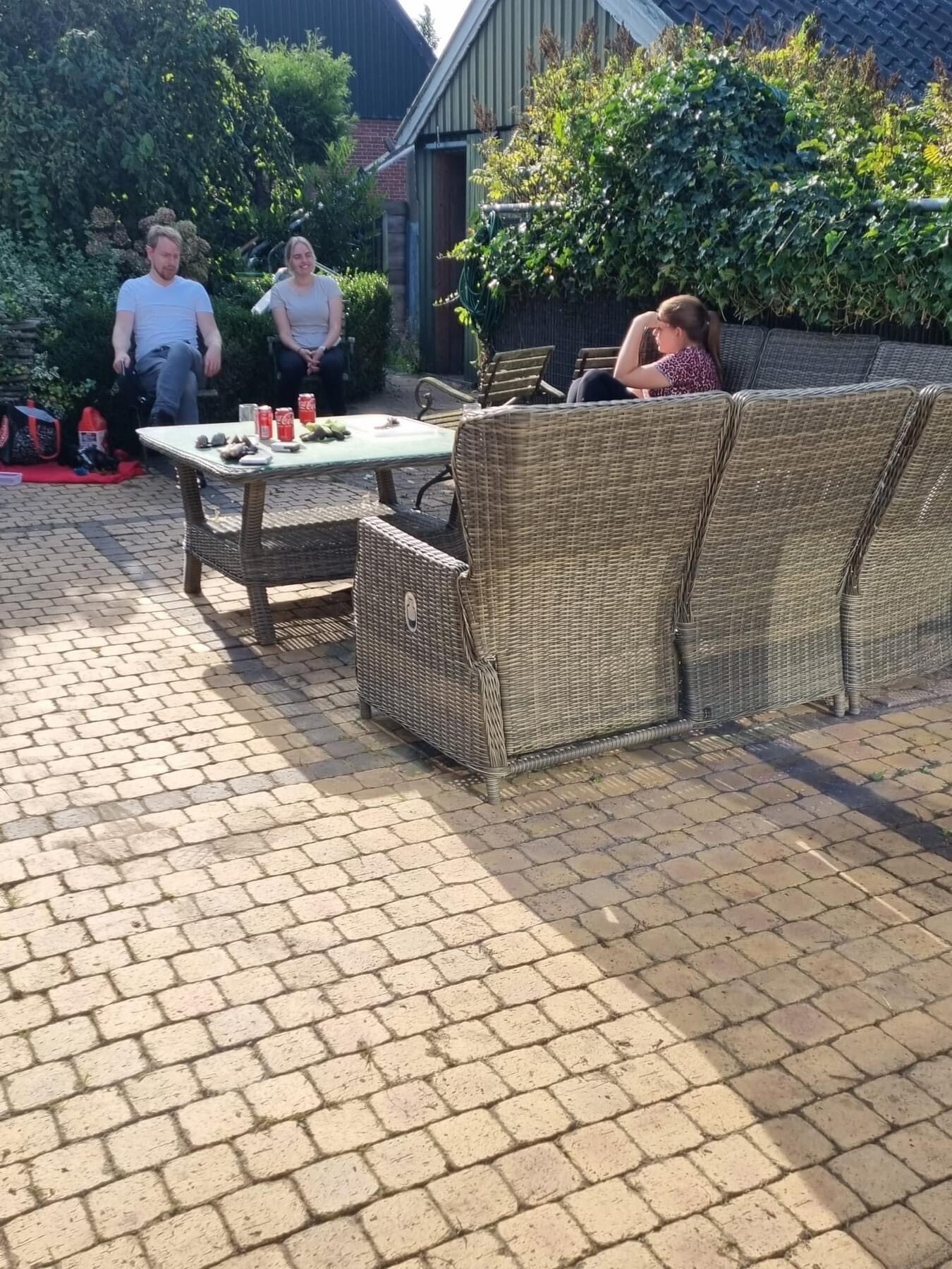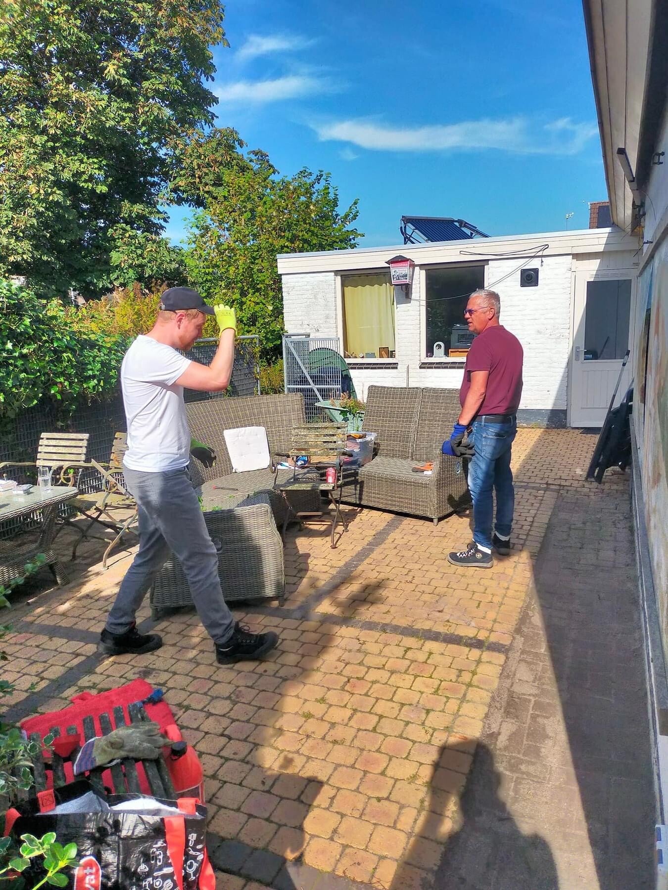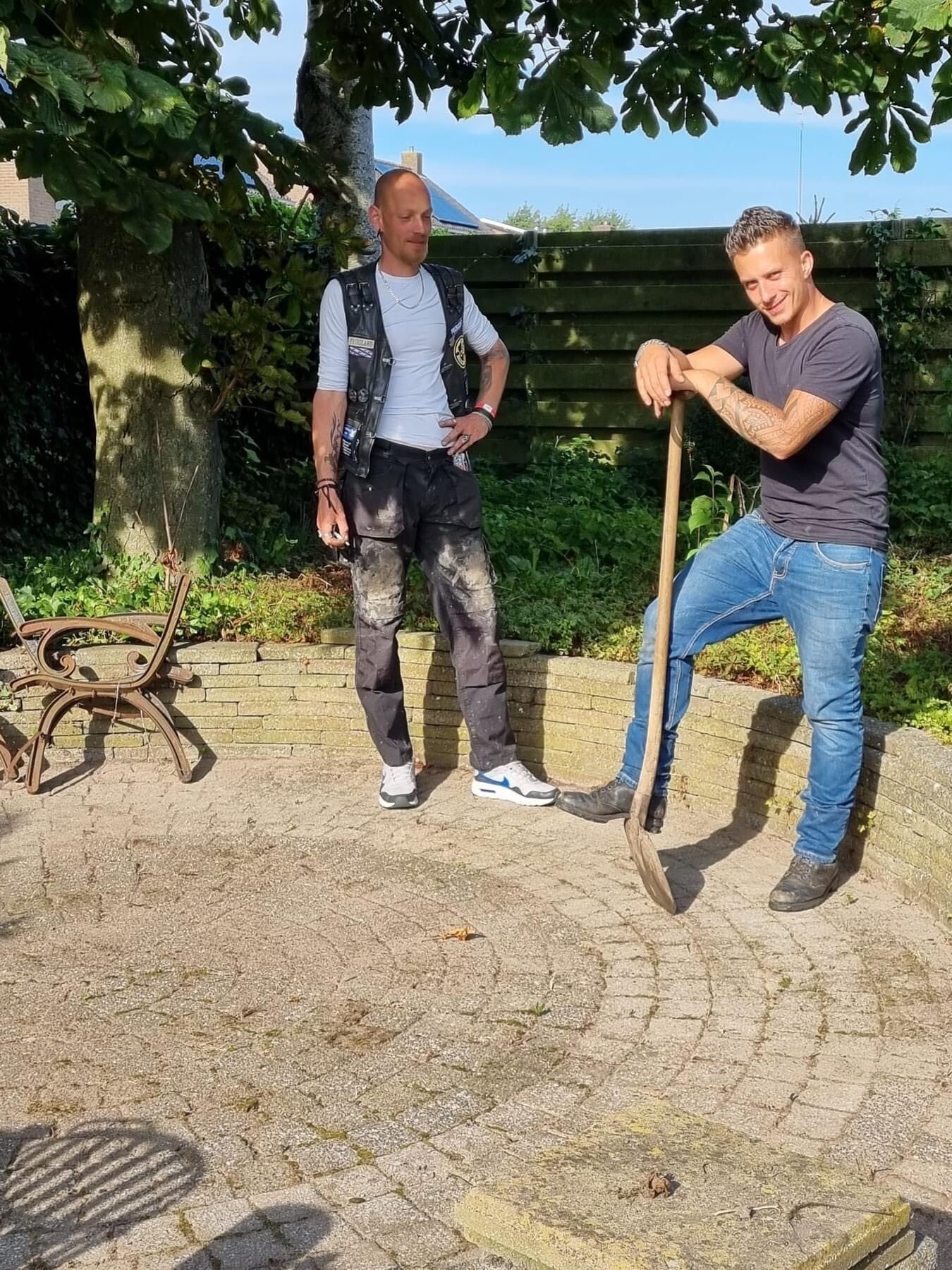 We hebben met zijn allen onze beste beentje voor gezet en zijn vandaag hard aan het knallen geweest. Paadjes die niet meer zichtbaar waren en tuin wat een oerwoud was en heel veel klinkers onkruid vrij maken tot het snoeien van de heggen. Door de vrouw des huizes zijn we goed verwend met allemaal lekker eten en drinken.