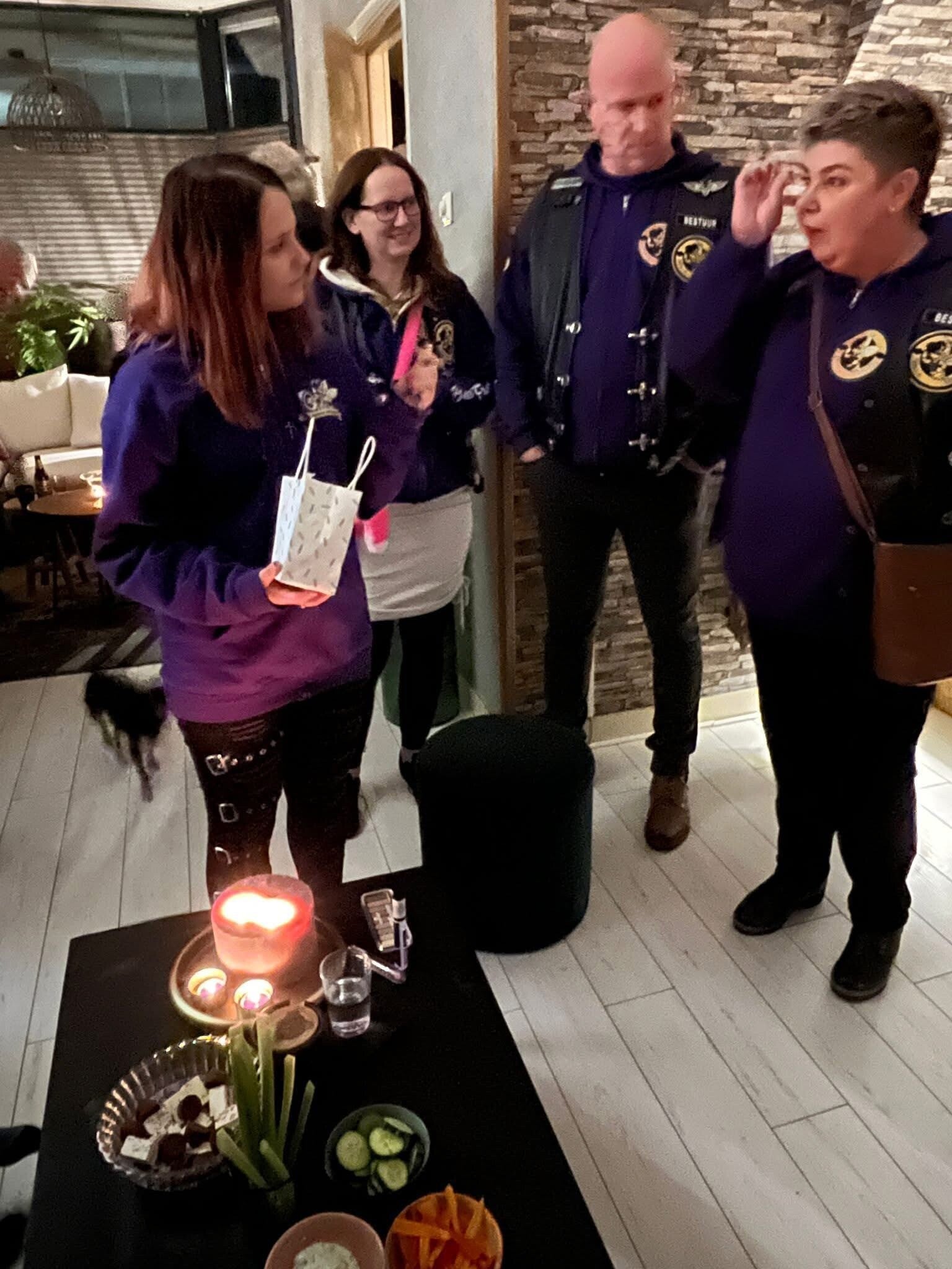 Na het zingen werden we door Jade uitgenodigd voor een hapje en een drankje. Na alle felicitaties mochten we de cadeautjes overhandigen.